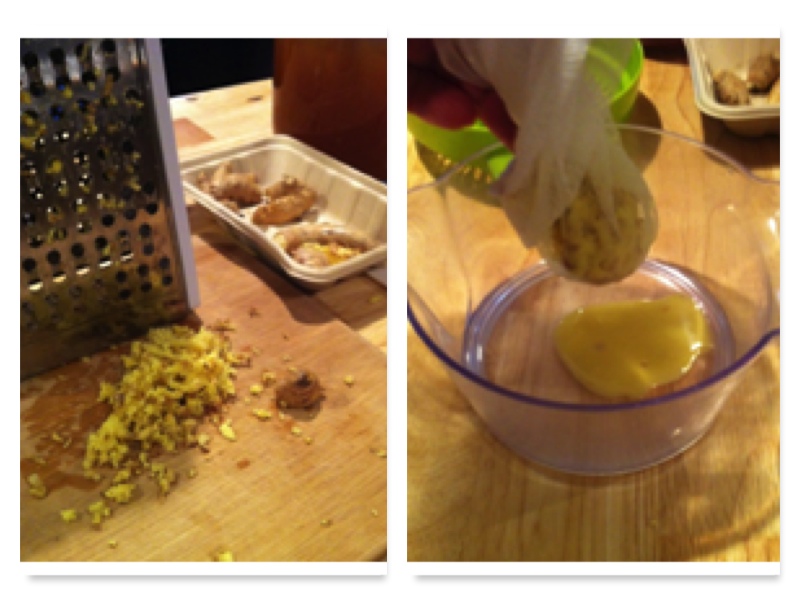 Put the grated ginger into your nut bag and SQUEEZE. You will get about 1 T of juice. I used this much for the whole batch.